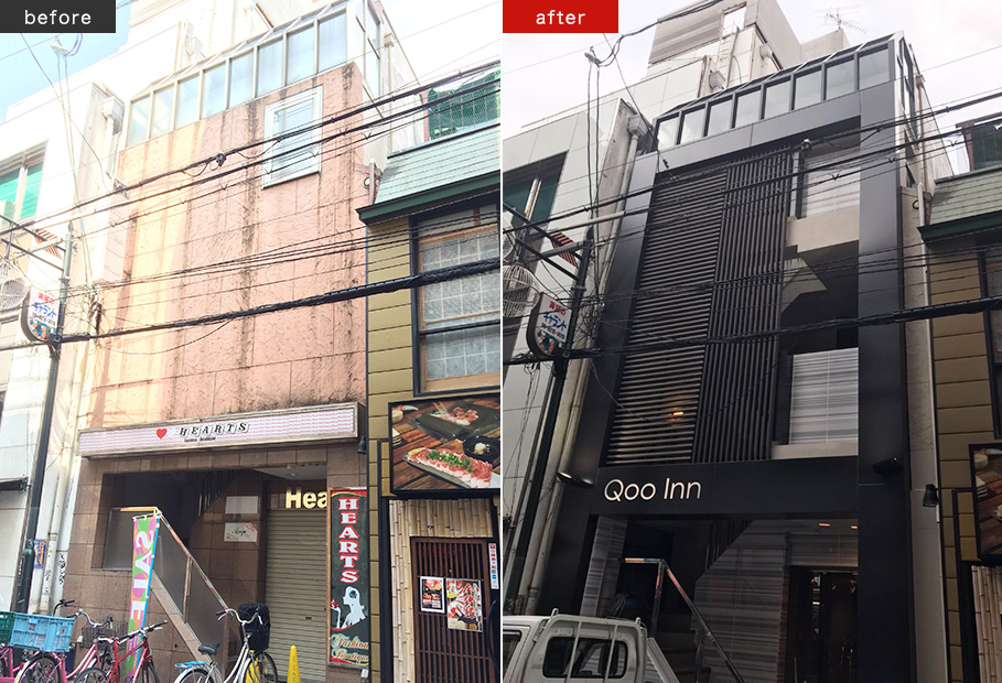 全面改装、1階は飲食店舗、2、3階は簡易宿所に